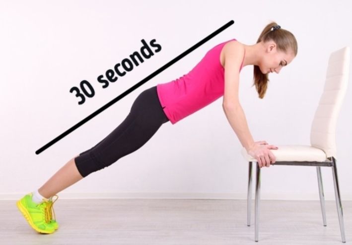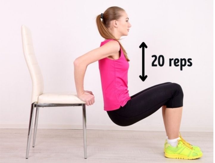 အရင်ဆုံး လက်နှစ်ဖက်ကို ခုံပေါ်တင်ထားပြီး ဒူးနှစ်ဖက်ကို ကွေးထားပါ။ ပြီးရင် ခန္ဓာကိုယ်အလည်ပိုင်းကို အပေါ်ကြွလိုက်အောက်ချလိုက်လုပ်ပေးပြီး လက်မောင်းကိုလည်း မတ်လိုက် ကွေးလိုက် လုပ်ပေးပါ။ လက်မောင်းကအဆီကိုလည်း ကျစေသလို ဗိုက်ကအဆီလည်း ကျစေပါတယ်။ အကြိမ် ၂၀ ကို ၂. ကြော့လုပ်ပေးပါ။