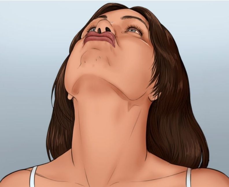 ဒုတိယ neck yoga ကတော့ ပုံမှာပြထားတဲ့အတိုင်း အပေါ်ကိုမော့ပြီး နှုတ်ခမ်းကိုဆုထားပါ။ အဲ့အတိုင်း ၅ စက္ကန့်နေလိုက်၊ ပြန်တည်လိုက်နဲ့ ၁၀ ကြိမ် လုပ်ပေးပါ။